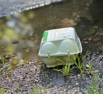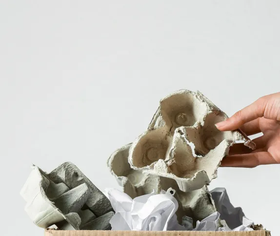 Moulded fibre egg packaging is compostable in industrial processes and certified according to European Standard EN 13432. Moulded fibre packaging undergoes a degradation process by the action of naturally occurring microorganisms. Along with all plant-based materials, they slowly break down into organic components until they can be consumed on a microscopic level. It takes a long time for plastic to disintegrate. Otherwise, it is incinerated along with other non-recyclable waste.