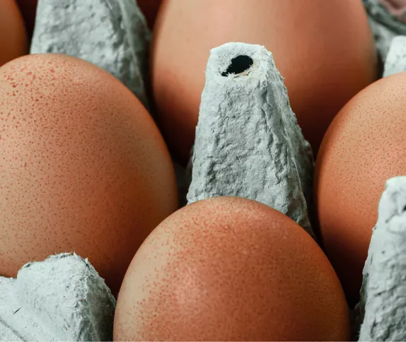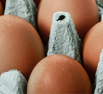 Unlike plastics, moulded fibre cushions protect and absorb shocks due to their ability to compress. Having well-protected eggs in moulded fibre cartons means fewer eggs are damaged in transportation and distribution. Less damage means also less food waste.