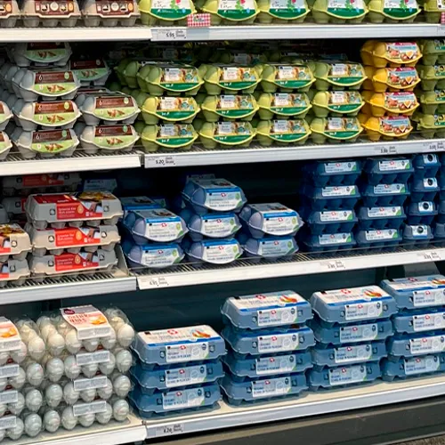 And Hartmann supplies the suitable egg cartons, which stand out excellently from the other packaging on the supermarket shelf due to their blue color.