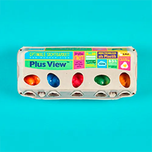 As a result, we have developed an innovative and one-of-a-kind packaging solution called Plus View™. This revolutionary design caters to today's demand for eco-friendly products and is specifically tailored for colored and hard-boiled eggs. With Hartmann's Plus View™, your products are not only protected, but their beauty is also showcased through our plastic-free packaging solution.