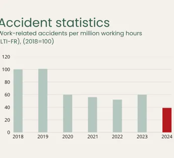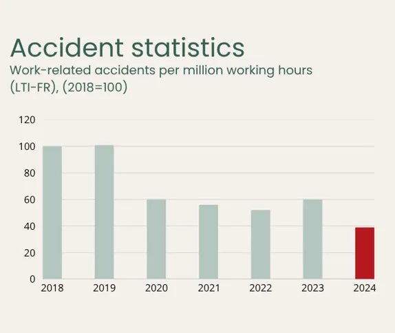 We promote the conditions outlined in the UN Global Compact’s human and labour rights principles in our value chain across all locations. The health and safety of our workers are of utmost importance to us, which is reflected in our declining injury rate.